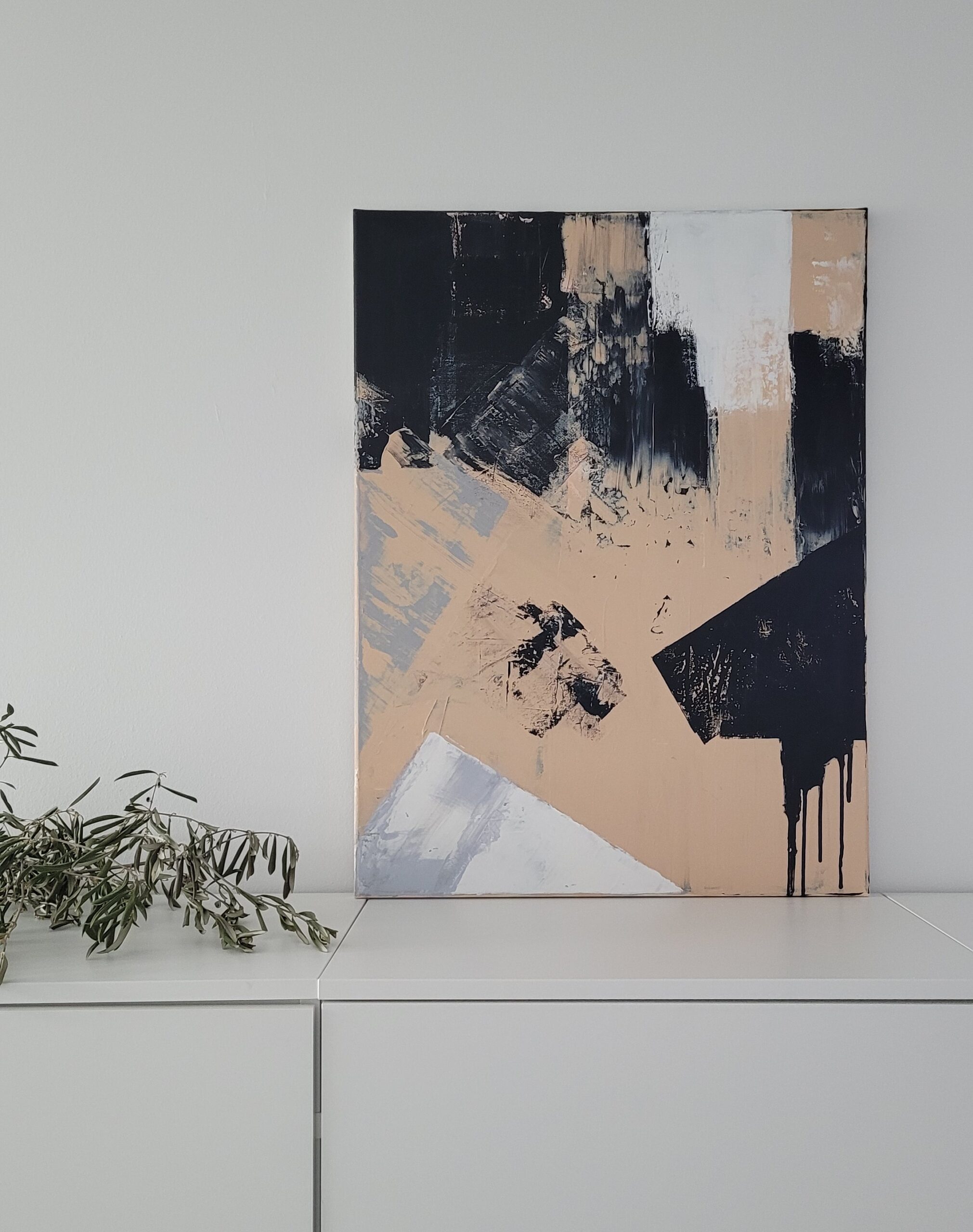 Farben: Schwarz, Weiß, Grau, Nude, GoldTechnik: Acryl auf schwarz grundierter Leinwand (100% Leinen)